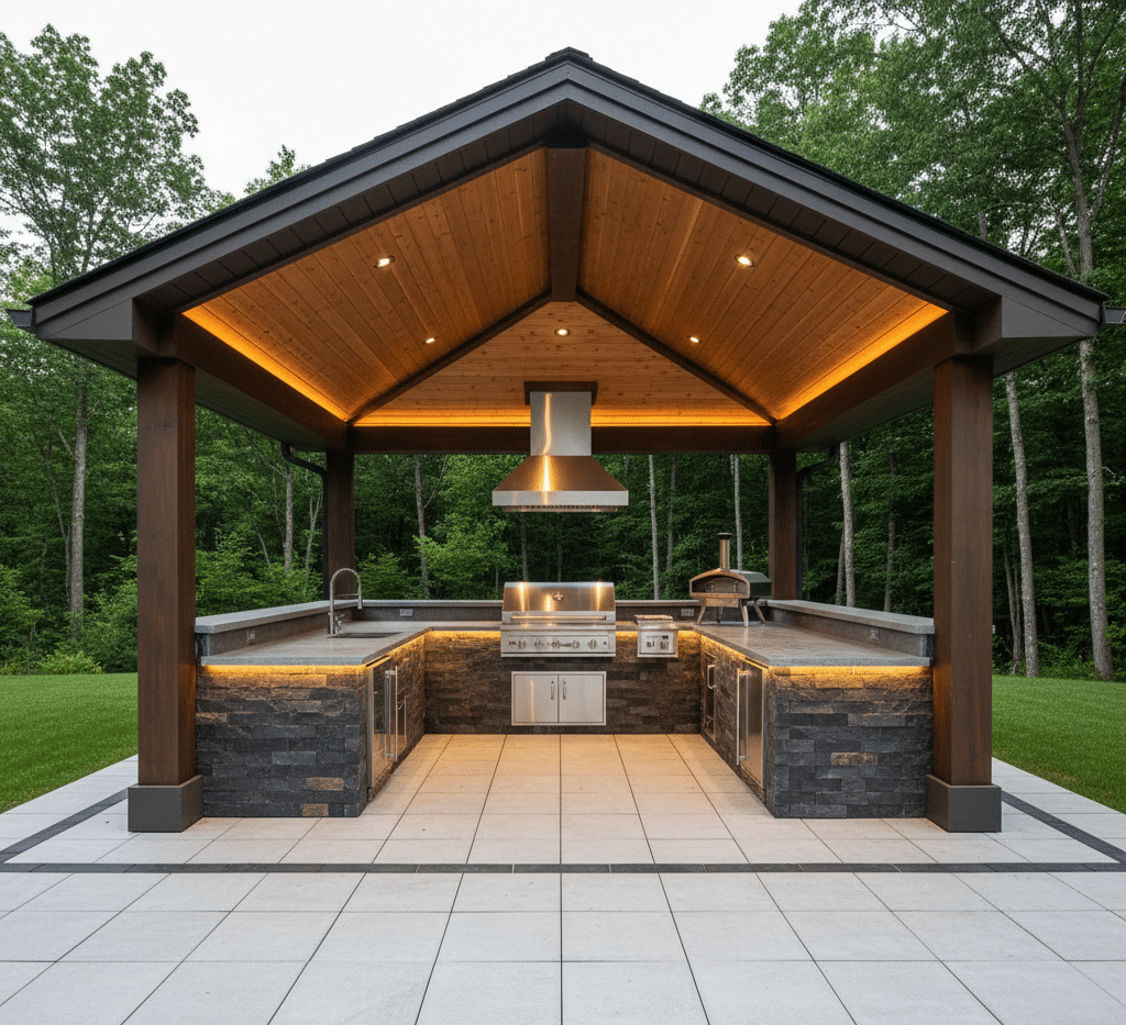 Transform your backyard into a full-featured outdoor entertainment area with a custom outdoor kitchen. We plan and install functional cooking zones with premium finishes, ensuring a seamless integration with your landscape and an enjoyable outdoor culinary experience.